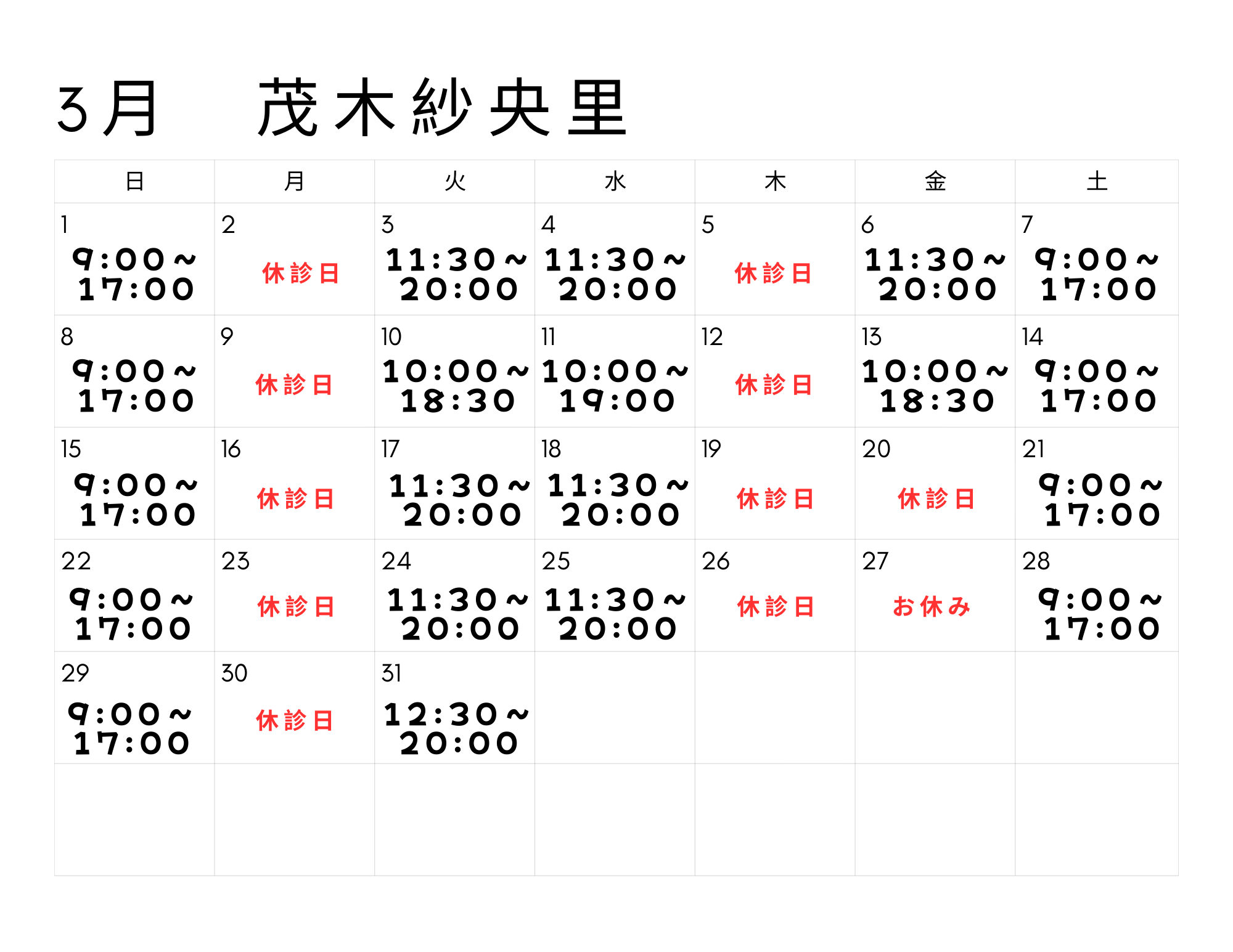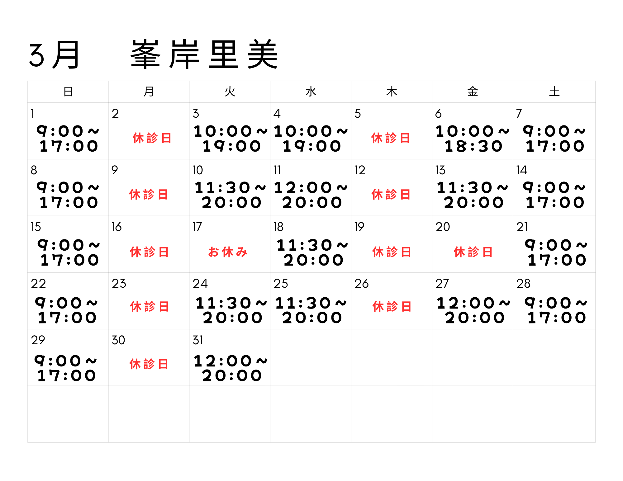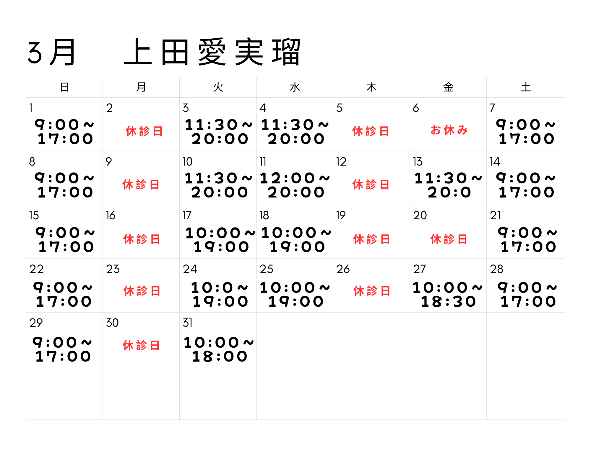 日曜日 9:00~17:00