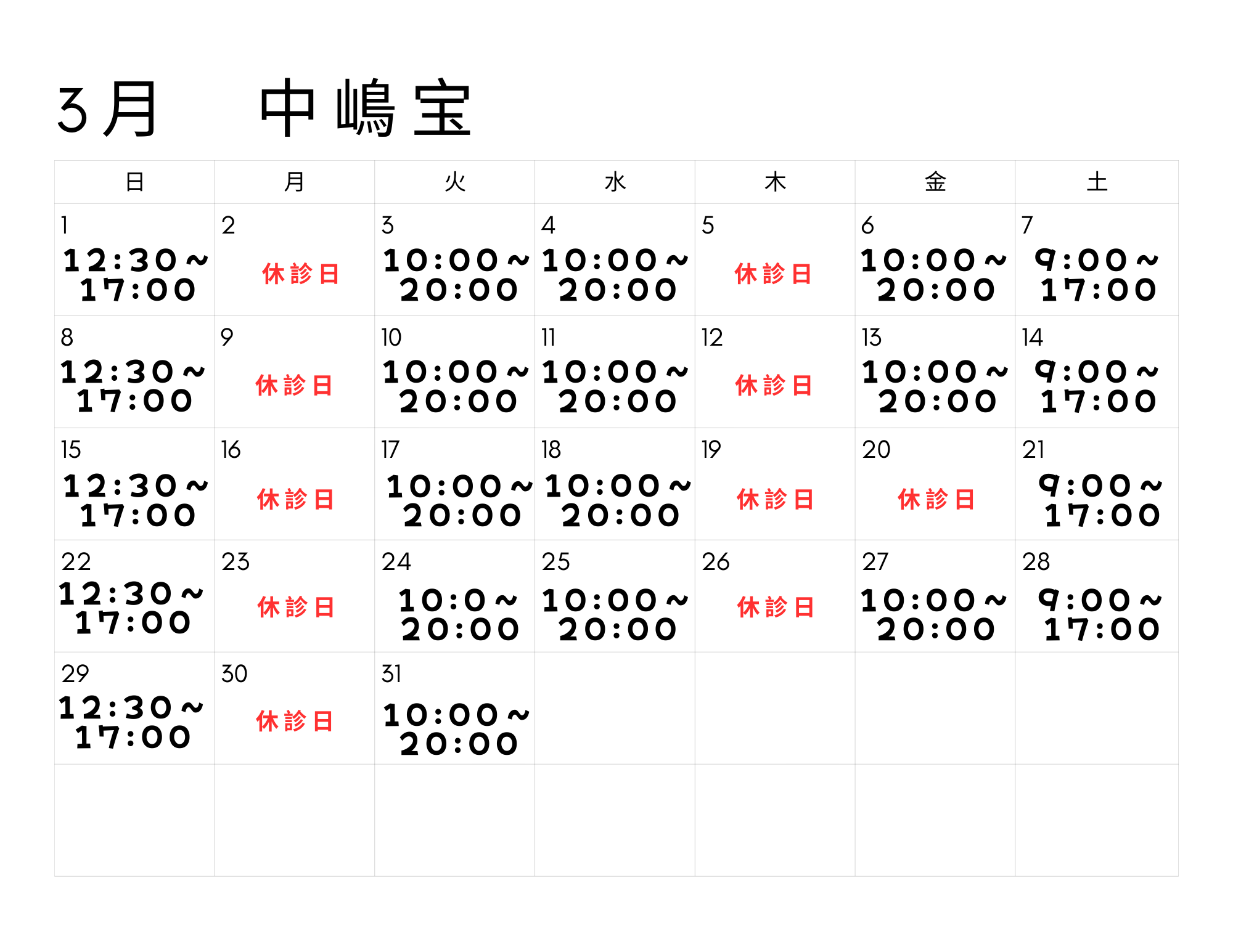 水曜日 12:00~20:00
