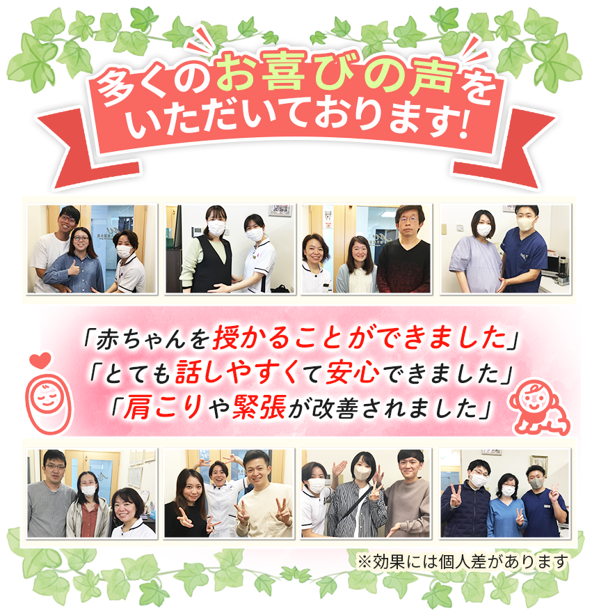 ※ 医師も推薦する技術があり不妊体質を改善するための知識も豊富です産婦人科医のお墨付きの技術と経験を持ったスタッフが揃っています。この技術と知識があるからこそ、安心して施術が受けられます。